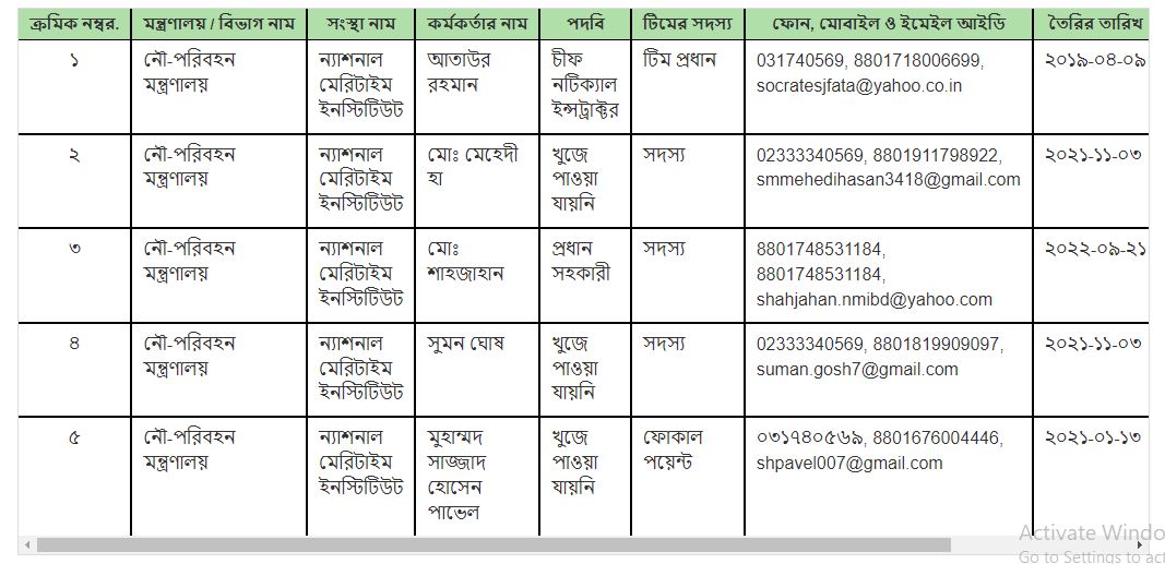 | ৫। | ইন্সট্রাক্টর (মেরিন ইঞ্জিনিয়ারিং), ন্যাশনাল মেরিটাইম ইন্সটিটিউট,চট্টগ্রাম | ফোকাল পয়েন্ট |
